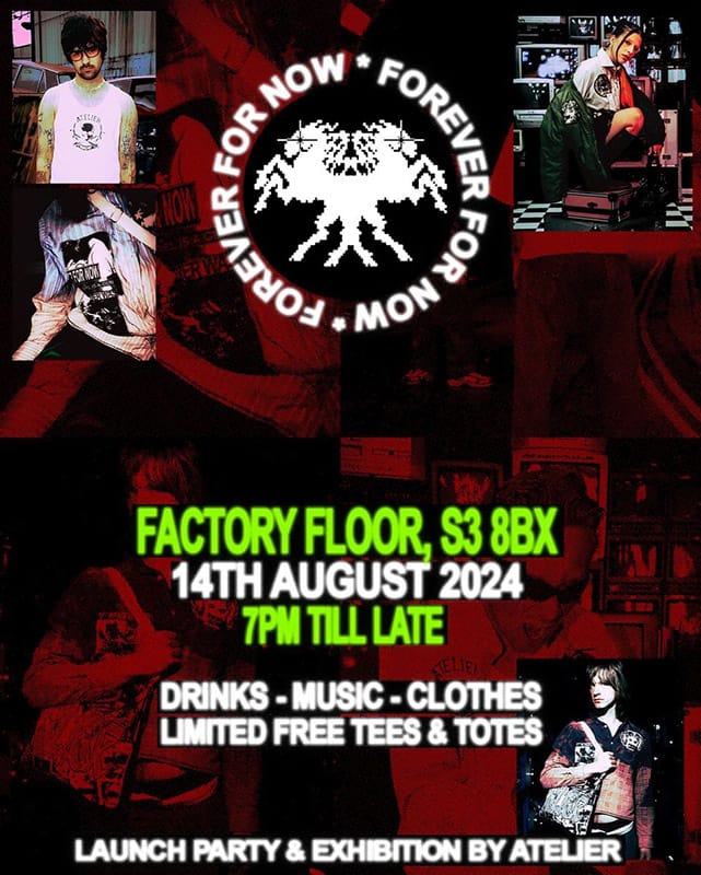 Atelier’s exhibition takes place Factory Floor Bar on 14th August from 7PM till late. The first few attendees will receive free shirts and totes (with shirts exclusive to the night). Plus, during the first 10 minutes, all shirts will be £25 – limited to one per person.