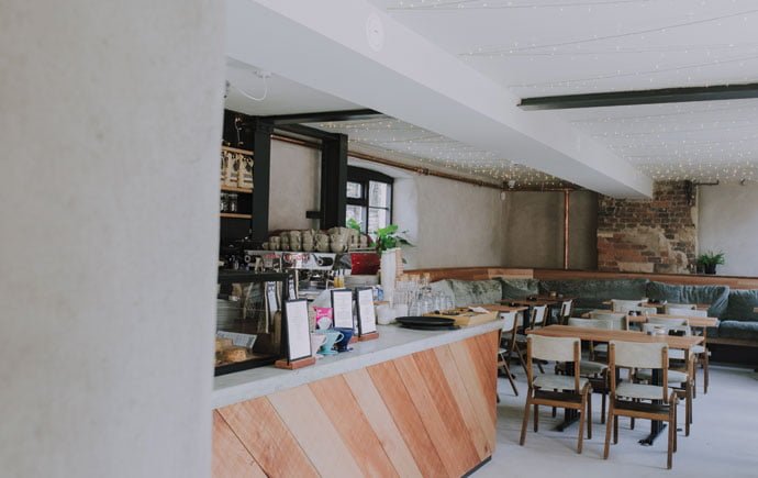 It’s all intriguing stuff to dwell on while taking a pew on one of the outdoor benches, drinking in the history (and some of the delights on the menu – more on that later). The interior is refreshingly light and airy but also places an emphasis on comfort: fluffy, fully-feathered pillows can be found on one side of the café and bar areas, while the living, self-irrigating plant wall sets it all off with a nice kick of feng shui.
