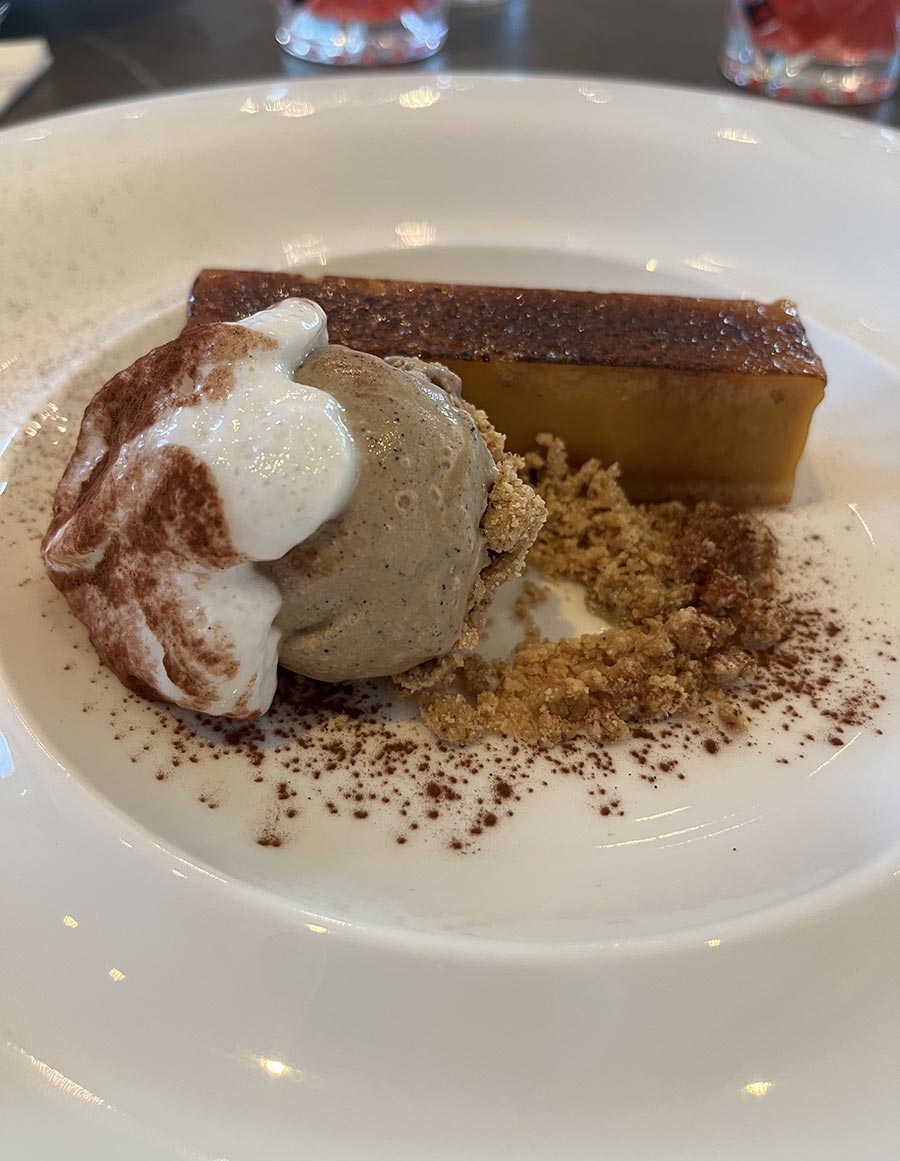 Salted caramel custard tart with cappuccino ice cream – stunning