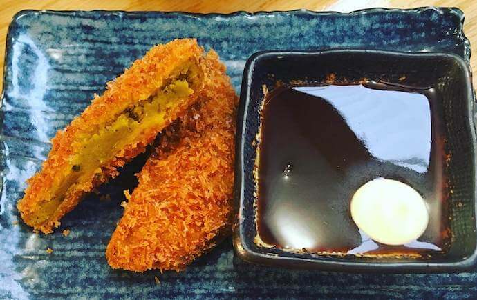 These croquettes were delicious and crunchy on the outside while dense and sweet on the in – we’d happily have had a whole bowl for dinner! They came with an incredibly more-ish sticky Tonkatsu sauce that was to die for.