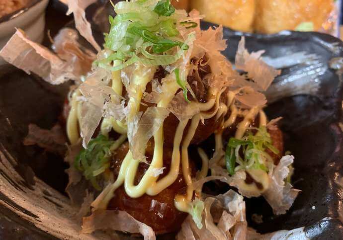 (Octopus dough balls, bonito flakes, spring onions & Japanese sauce)